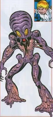 Jimmy Marks reappears as an apparently homeless telekinetic boy under attack by the anti-mutant Purifiers; rescued by faculty members of the Avengers Academy, Marks is recruited into the Academy's recently expanded student body.[8] However, Marks has secretly become Hybrid once more, possibly due to the return of Wraithworld to Earth's dimension;[9] Hybrid states that his intended goal is to establish himself as Wraithworld's king. Hybrid finds an ally in a future version of Reptil, who has taken over his past self's body in order to ensure that certain events occur to maintain his future's history. One of these events is Hybrid "murdering half the Academy"; to facilitate this, Reptil begins to lead students and faculty to Marks' room one by one so that Hybrid may either feed off of their powers or, in the case of the women, enthrall them as breeding stock.[10] Together students and faculty of the Academy managed to win against Hybrid and banish him from this dimension.[11]