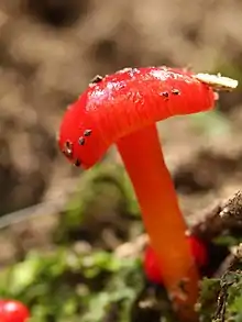 Hygrocybe erythrocala is a mushroom of the waxcap genus Hygrocybe. It grows in moist, shady conditions near Sydney, Australia. The cap is viscid and glossy with striations; this species lacks decurrent gills.[1] It was described in 1997 by the mycologist Anthony M. Young.[2][3]