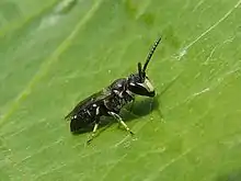 - ↑ Martins, Kyle T.; Normandin, Étienne; Ascher, John S. (June 2017). "Hylaeus communis (Hymenoptera: Colletidae), a new exotic bee for North America with generalist foraging and habitat preferences". The Canadian Entomologist. 149 (3): 377–390. doi:10.4039/tce.2016.62.