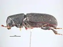 Hylastes ater is a species of beetle in the family Curculionidae, the true weevils. It is a bark beetle, a member of the subfamily Scolytinae. Its common name is the black pine bark beetle. It is native to Europe and parts of Asia, including China and Korea. It is known as an introduced species in many other regions, including Australia, New Zealand, the Americas, and South Africa. It is a pest of pines and other trees, and it is widespread in areas where pine trees are cultivated. The species "is an important threat to the biosecurity of all forested countries."[1]