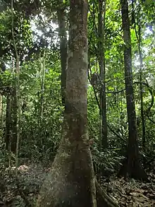 Hymenaea oblongifolia is a widespread species of flowering plant in the family Fabaceae, native to the várzea forest ecosystem of northern and western South America.[2] A tree reaching 40 m (130 ft), it is harvested for its timber, and its edible fruit is also collected in the wild for sale.[3] It is used as a street tree in Medellín, Colombia.[4]