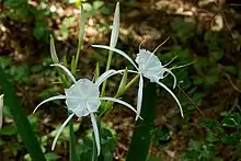 Hymenocallis occidentalis is a plant species native to the southern United States. It is known along the Gulf Coast from South Carolina to Texas, and in the Mississippi Valley as far north as southern Illinois and Indiana.[3] It is also cultivated as an ornamental elsewhere because of its showy, sweet-smelling flowers.[1] Common names include woodland spider-lily, hammock spider-lily or northern spider-lily.[4]