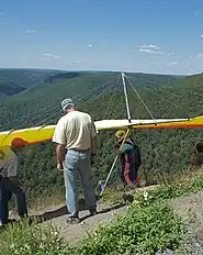 The park is the location of a scenic lookout and a contains a launching point for hang gliding. Visitors to Hyner View State Park can see the West Branch Susquehanna River for many miles both up and downstream. Hang gliders can be launched from a ramp just below the lookout wall and glide over the river valley. The park has a small picnic area, a parking area, and restrooms.[1]