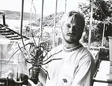 Daniel Ray Norris with lobster at UOG Marine Laboratory