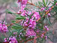 It grows to between 0.2 and 1.5 metres in height and produces pink or white flowers between August and May in its native range.