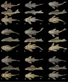 The loricariid labeled with the number 2 in this image is a specimen of H. albopunctatus.