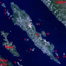 The shortest connection of island Iž with Zadar iz through the strait of Mali Ždrelac, nowadays used by all public shipping services which operate to the island.[8]