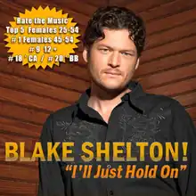 "I'll Just Hold On" is a song written by Ben Hayslip, Troy Olsen and Bryan Simpson, and recorded by American country music singer Blake Shelton. It was released in February 2009 as the second single from his fifth studio album Startin' Fires.