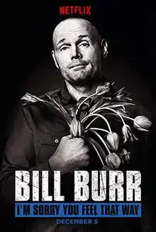 I'm Sorry You Feel That Way is a 2014 stand-up comedy film written by and starring the American comedian Bill Burr. It was filmed in the summer of 2014 at the Tabernacle Theater in Atlanta, Georgia. The film was shot in black and white, which is rare for modern comedy specials.