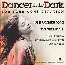 "I've Seen It All" is a song recorded by Icelandic singer Björk for the Dancer in the Dark soundtrack, Selmasongs (2000). It was written by the singer, along with Sjón and Lars von Trier (who also directed the film). It was released as the first promotional single from Selmasongs on 21 July 2000, by One Little Indian Records. The song features vocals from Radiohead frontman Thom Yorke. It was nominated for an Academy Award for Best Original Song. Lyrically, it speaks of one coming to terms with the fact that they are going blind.[1]