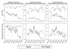 Oil production in the Islamic State developed over time, reaching its peak in 2014.[5] Due to military interventions, IS subsequently lost all of its territory in Syria and Iraq.[5][6]