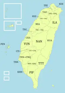 - Each code consists of two parts, separated by a hyphen. The first part is TW, the ISO 3166-1 alpha-2 code of Taiwan. The second part is three letters.