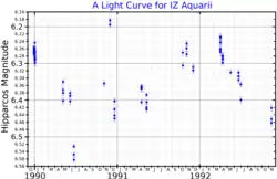 - 1 2 Watson, Christopher (4 January 2010). "IZ Aquarii". The International Variable Star Index. American Association of Variable Star Observers. Retrieved 13 July 2015.