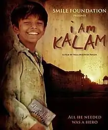 I Am Kalam is a 2011 Indian Hindi-language drama film produced by the non-governmental charity Smile Foundation and directed by Nila Madhab Panda, cinematography by Mohana Krishna. The character of Chhotu has been performed by Harsh Mayar.[1] The film was screened in the market section at the 63rd Cannes Film Festival on 12 May 2010. It has been showcased in various film festivals and has received many awards and honours.[2][3][4][5] The film was screened retrospective on 17 August 2016 at the Independence Day Film Festival jointly presented by the Indian Directorate of Film Festivals and Ministry of Defense, commemorating 70th Indian Independence Day.