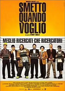 I Can Quit Whenever I Want (Italian: Smetto quando voglio) is a 2014 Italian crime comedy film directed by Sydney Sibilia.[2][3] It was followed by two sequels, subtitled Masterclass and Ad Honorem, both released in 2017.
