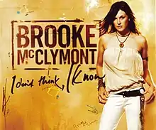 "I Don't Think, I Know" is a pop country song written by Brooke McClymont and Clive Young, produced by Charles Fisher for McClymont's second single released in Australia on 2 December 2002 as a CD single. It became McClymont's highest selling solo single to date peaking at number forty-five on the Australian ARIA Singles Chart and spending fourteen weeks in the top one hundred.[1]