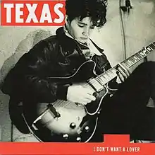"I Don't Want a Lover" is the debut single of Scottish band Texas, taken from their first album, Southside (1989). The music starts with blues slide guitar followed by a throbbing rhythm section before the vocals break in.[1] It was released in January 1989 and peaked at number eight on the UK Singles Chart.