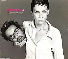 "I Saved the World Today" is a song recorded by British pop music duo Eurythmics for their eighth studio album, Peace (1999). It was written and co-produced by band members Annie Lennox and David A. Stewart.