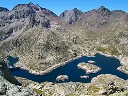 Ibón de Bachimaña Alto and Ibón de Bachimaña Bajo are glacial lakes in the Tena Valley in the Province of Huesca, northeastern Spain, near the border with France. Ibón de Bachimaña Alto, the larger, lies at an elevation of 2,207 metres (7,241 ft) above sea level.[1] It covers an area of 38 hectares (0.15 sq mi).