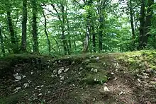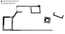 The castle was built in the 11th Century on the northeastern edge of Iberg Mountain. This site consisted of a main building, a gatehouse and two outbuildings. Surrounding the site was the castle moat, which should protect against attacks from the south. As there are no written records of the castle nor the inhabitants, the only information about the castle comes from archaeological investigations. The castle was abandoned around 1200[1] or possibly later, at the end of the 12th or at the beginning of the 13th Century when a fire destroyed the castle.[2] During reconstruction, the moat was expanded and additional towers were added. However, the castle was abandoned before completion of work, possibly due to resistance from Murbach Abbey.