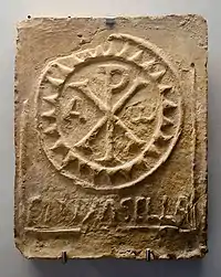 Decorated ceramic tiles are paleochristian ceramic bricks with relief designs made by molding, used in the architecture of Late Antiquity in the south of the Iberian Peninsula, with two production centres identified in the valley of the Guadalquivir.[1] The decorative motifs are mostly religious (in particular, the Chi Rho),[2] although there are also zoomorphic and vegetal examples. Their function is not known, although use as funerary or, more recently, as ornamental elements in ceilings have been proposed .[1]