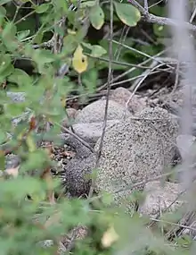 A perennial plant with a large tuberous rootstock that resembles a boulder, shoots emerge annually with bright green leaves and have dioecious flowers and reddish or orangish fruits.[1] The fruits are not bad smelling, but are unpalatable as they are very bitter.[3]