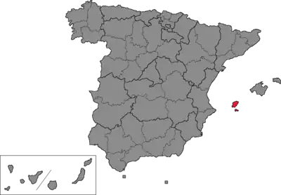 Ibiza–Formentera (Catalan: Eivissa–Formentera) is one of the 59 constituencies (Spanish: circunscripciones) represented in the Senate of Spain, the upper chamber of the Spanish parliament, the Cortes Generales. The constituency elects one senator. Its boundaries correspond to those of the islands of Ibiza and Formentera. The electoral system uses an open list partial block voting, with electors voting for individual candidates instead of parties.