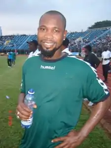 ![]() Kargbo after a training session with the national team of Sierra Leone, 4 September 2008 | |||