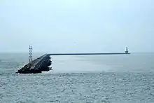 At 5 am on 5 February, Ice Boat No. 3, under the command of Captain W. F. P. Jacobs, arrived at the Delaware Breakwater "under orders to convey a fleet of ice-bound steamers, tugs, barges and schooners up to Philadelphia."[51] In the National Harbor of Refuge between the two breakwaters, No. 3's paddlewheels became jammed by ice, and unable to maneouver, the vessel was dragged by the ice floes over a recently sunken barge, the Santiago, one of whose broken masts pierced the ice boat's hull below the waterline. Within minutes, water had extinguished No. 3's furnaces and the order was given to abandon ship. Unable to launch a lifeboat because of the surrounding ice, the crew were forced to leap for safety onto the ice floes, the ice boat sinking shortly thereafter, at about 6 am.[51]