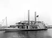- ↑ According to DANFS,[1] Arctic was used as a "refrigeration ship", but there is no evidence the vessel was ever fitted with refrigeration equipment and no source has been found to corroborate this account; on the contrary, all available contemporary sources refer to her role as that of a gunboat or patrol craft. DANFS also fails to mention the ship's armament.