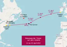 - ↑ Megan E. Linkin: Icebergs Ahead!: How Weather Doomed The Titanic. In: Weatherwise, volume 60, no. 5, pp. 20–25, see p. 24/25. DOI:10.3200/WEWI.60.5.20-25