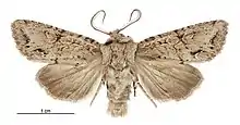 Ichneutica skelloni is a moth of the family Noctuidae.[1] This species is endemic to New Zealand. Its presence has been confirmed in the North Island only in the Wellington region but is widespread throughout the South Island. It is also found in Stewart Island. I. skelloni is extremely variable in size, in the colour and patterns on the fore and hind wings, length of pectinations on male antennae and even in its genitalia. A larger more patterned form can be found in Westland and Fiordland, a medium-sized form is found from Wellington to Stewart Island and there is also a smaller Dunedin and Southland form. This species can be confused with specimens with the species I. insignis , I. scutata and I. pelanodes. I. skelloni can be found in forest and shrubland habitat. Adults are on the wing from July to April and are attracted to light. Host plants for the larvae are found in the genera Plantago, Senecio and Ranunculus and also include the species Bellis perennis.[2]