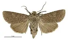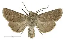 Ichneutica sollennis is a moth of the family Noctuidae.[1][2] This species is endemic to New Zealand. This species is known from the eastern and central areas of the southern South Island. It inhabits alpine zones and has been collected in tussock grasslands. The life history of this species is unknown. Although the host species is currently unknown it has been hypothesised that this species have grass or grass like plants as host plants. Adults are on the wing from November to February and are attracted to light.