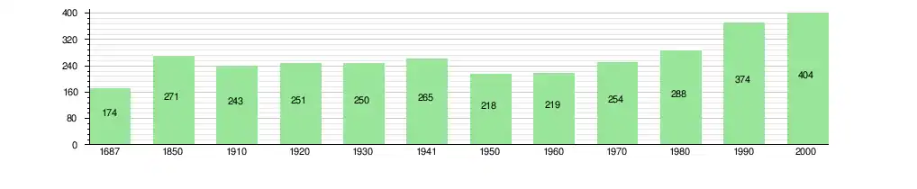 Icogne has a population (as of December 2020) of 633.[7] As of 2008, 17.6% of the population are resident foreign nationals.[8] Over the last 10 years (2000–2010 ) the population has changed at a rate of 8.6%. It has changed at a rate of 16% due to migration and at a rate of -1.1% due to births and deaths.[9]