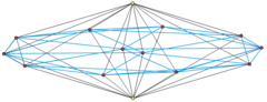 ![]() Orthogonal projection Central icosahedron with 30 blue edges and 20 red vertices, apex vertices in yellow, connecting to icosahedron with 24 black edges. | ||