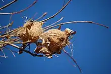 Like other members of the Icteridae, Bullock's orioles prefer habitat edges. They especially prefer riparian corridors, open deciduous woodland, and scrub forest.[3] Observations during the breeding season indicate that members of this species prefer areas with an abundance of cottonwood, pecan, and (if near water) willow.[3][4] In dry areas, this species prefers salt cedar and mesquite.[4] In California, eucalyptus trees are used as major sources of nectar.[3][4]