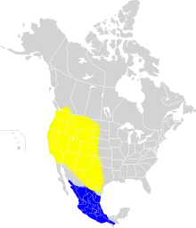 Bullock's orioles are native to western North America, though they are sometimes found as vagrants in the eastern half of the continent.[3] During the breeding season, they are found as far west as the eastern foothills of the Cascade Range. Their breeding range stretches east to the Dakotas, Kansas, and northern Central Texas.[3] This species can be found as far north as British Columbia in Canada and as far south as Sonora or Durango in Mexico.[3][4] It is common throughout its range, but is absent in parts of Arizona and Idaho, where a combination of extreme elevation and an arid climate make for poor living conditions.[4] During winter, this species retreats to Mexico and northern Central America. Its winter range extends south and east from Sinaloa to Oaxaca.[3]
