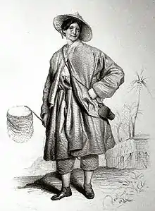 She proceeded across the Indian Ocean to the Malay archipelago, spending two weeks in Singapore where she collected a new species of mole cricket[15] in addition to fish, seaweed, and crustaceans. She spent eighteen months in the Sunda Islands, accompanied by Captain John Brooke, the nephew and heir of Sir James Brooke. She visited the Dayaks of Borneo and became one of the first explorers to report on the traditions of the Bataks in Sumatra and the Malukus. Along the way, she encountered Sultan Abdu'l Rashid Muhammad Jamal ud-din of the principality of Sintang, renowned ichthyologist Dr. Pieter Bleeker in Batavia (present-day Jakarta), and Colonel van der Hart at Bukittinggi in West Sumatra. She was granted permission to enter the territories of local villages where she observed dance performances, acquired a finely carved tunggal panaluan, and accumulated a collection of valuable specimens, including ray-finned fish (Homalopterula gymnogaster) and checker barb (Puntius oligolepis).