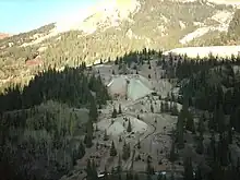 During the 1980s, reclamation efforts took place at the mill-tailings ponds near the mine and farther north down the valley, near the old Ironton town site, where more mill tailings ponds had been created after all available space near the mine had been exhausted. The old tailings ponds can still be seen just off the highway, appearing now as flat, grassy meadows. The same flat mill tailings piles seen near the Pandora mill stand as evidence of 100 years of mining and milling in Telluride.