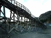 The Idarado Mine was a mining operation in the San Juan Mountains of Ouray County, Colorado near the now-ghost town of Guston, producing primarily lead, silver and zinc along with lesser amounts of gold and copper. The mine is within the Sneffels-Red Mountain-Telluride mining district. The remains of the operation are visible from the Million Dollar Highway, north of Red Mountain Pass, between Ouray and Silverton, Colorado. The tunnels of the Idarado extend some 5 miles (8 km) west under 13,000 foot (4,000 m) mountains to the Pandora Mill near Telluride, a trip of more than 60 miles (100 km) by highway.