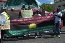 MASSOB (which has headquarters across the east and embassies internationally) has been able to leverage the development of an Igbo national consciousness for the promulgation of Biafran ideals.[3] MASSOB has rallied supporters in the southeast and abroad to observe Biafran Day in commemoration of the founding of the Republic of Biafra in 1967.[11] This act, which occurred in 2004 and 2013, contributed to the closure of major shops, banks, and other businesses in eastern states.[3] They also have contributed to the hoisting of Biafra flags in Imo state, Abia state, Enugu state, Ebonyi state, and Anambra state.[3]