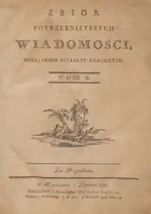 In 1781–83 Krasicki published a two-volume encyclopedia, Zbiór potrzebniejszych wiadomości (A Collection of Essential Information), the second Polish-language general encyclopedia after Benedykt Chmielowski's Nowe Ateny (The New Athens, 1745–46).