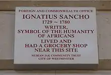 - ↑ "Ignatius Sancho". Westminster Abbey. Retrieved 3 January 2024.
