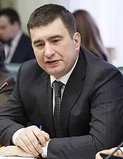 Ihor Olehovych Markov (Ukrainian: Ігор Олегович Марков; Russian: Игорь Олегович Марков, romanized: Igor Olegovich Markov; born on 18 January 1973 in Odesa) is a former Ukrainian entrepreneur, founder and chairman of the Rodina Party and is a former deputy of Ukrainian parliament as a member of the Party of Regions faction.[1] Markov is wanted in Ukraine in connection with riots in Odesa that took place on 2 September 2007.[2] He was arrested in Italy's Sanremo in August 2015.[3] In February 2016 Italy refused Markov's extradition to Ukraine.[4]