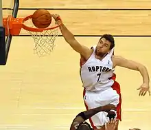 During the 2011 NBA lockout, Bargnani chose not to sign overseas and decided instead to work on his game and develop into more of a power forward following the Raptors' acquisition of Lithuanian center Jonas Valančiūnas in the 2011 NBA draft.[29] On 28 March 2012, in a game against the Denver Nuggets, Bargnani scored 26 points and became the 4th player to ever score 6000 points as a Raptor.[30]
