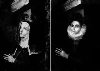The restoration of the Perdono di Gesualdo revealed the portrait of Eleonora d'Este (right), previously covered by the figure of a Poor Clare (left) in the seventeenth century.
