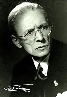 He taught at the Florence Conservatory (director from 1917 to 1923), directed the Milan Conservatory from 1923, and was Respighi's successor at the National Academy of St Cecilia in Rome from 1936 to 1958.[2] His students included Mario Castelnuovo-Tedesco, Olga Rudge, Manoah Leide-Tedesco, Franco Donatoni and Amaury Veray. See: List of music students by teacher: N to Q#Ildebrando Pizzetti. Also a music critic, he wrote several books on the music of Italy and of Greece and co-founded a musical journal. Pizzetti was an active supporter of fascism and signed the Manifesto of the Fascist Intellectuals in 1925.