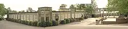 according to Pevsner.[6] This oldest part of the school was designed by County Architect Mr Widdows, who saw it as resembling 'an eastern fortress'. This design was echoed by the tops of the main entrance gateposts.