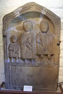 A wall, once part of the fort, can still be seen from the back of Ilkley Manor House, which stands on the site.[5] Around the area are four signs showing the edges of the walls of the fort.[6] The area of the fort extends underneath the Manor House and nearby All Saints Parish Church whilst the vicus probably existed from the car park in the centre of Ilkley to Christchurch on The Grove. The church and Manor House both have a collection of Roman altars and tombstones, Anglo-Saxon crosses, and Medieval tombstones.[7] The Roman altars date to the reigns of Antoninus Pius (138 to 161), and Septimius Severus and his son Caracalla (211 to 217).[8]