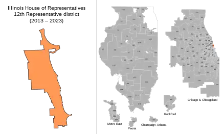 1. 1 2 "STATE LEGISLATIVE DISTRICT REFERENCE MAP (2022): Illinois - State House District 12" (PDF). United States Census Bureau. October 12, 2022. Retrieved February 6, 2023.